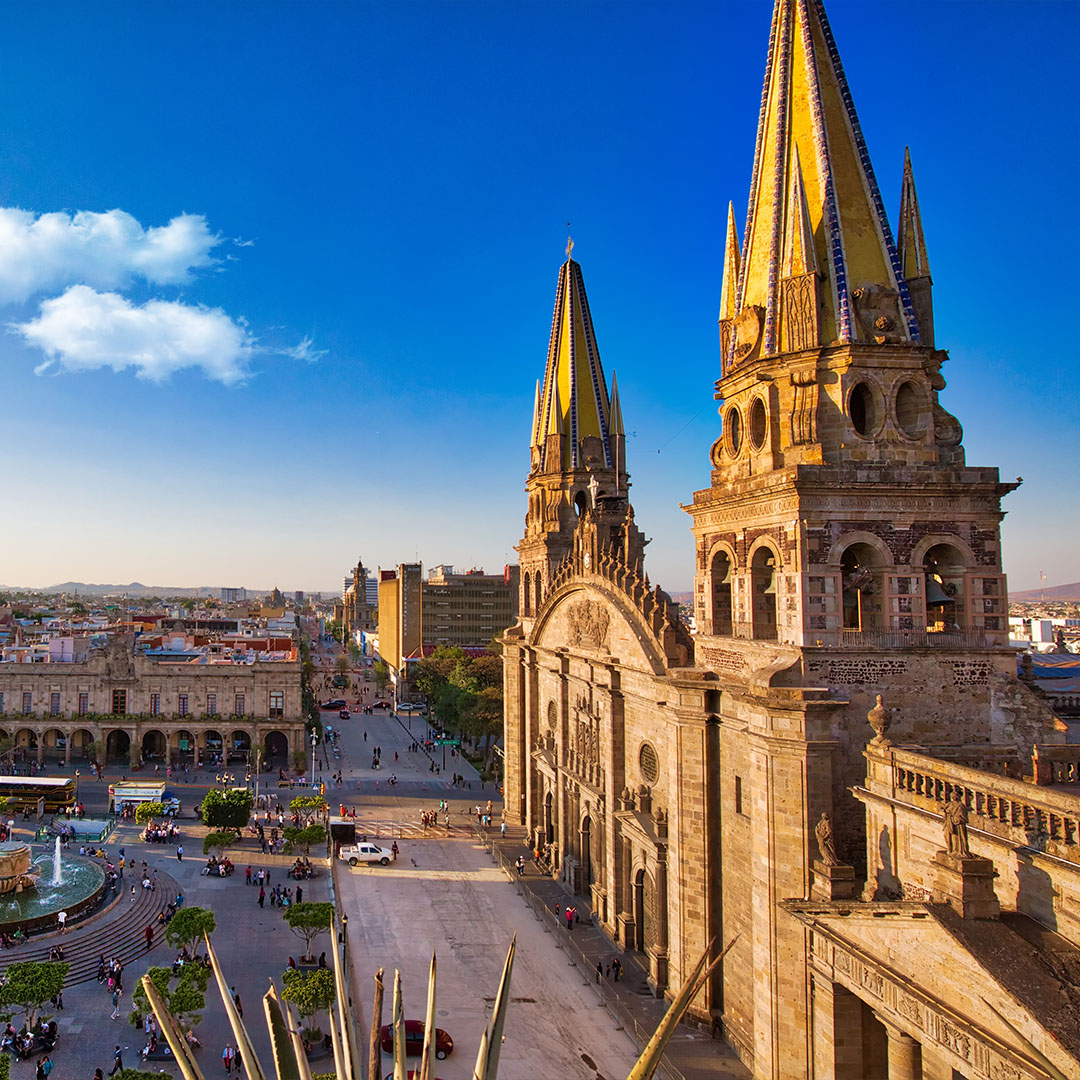 瓜达拉哈拉历史悠久的市区建筑风格多样,别具风情。值得一提的是1616年落成的圣母升天圣殿主教座堂(Metropolitan Cathedral),融合了哥特式、巴洛克式、摩尔式及新古典主义建筑风格。另一值得参观的景点是Rotonda de los Hombres Ilustres(圆堂纪念碑),此圆形石砌结构由17根立柱组成,环绕着中央98瓮受景仰人士的骨灰。最后还有被列为联合国教科文组织世界遗产名录的卡瓦尼亚斯文化研究所(Istitudo Cultural de Cabañas),建于19世纪初期,旨在为弱势群体提供关怀和庇护。这座建筑群融合了多项专为满足居住者需求而设计的不同寻常的功能,在当时可谓独一无二。20世纪初,教堂装饰一系列令人惊叹的壁画,现在被认为是墨西哥艺术的典范杰作。这些壁画是当时墨西哥最负盛名的壁画大师José Clemente Orozco的作品。