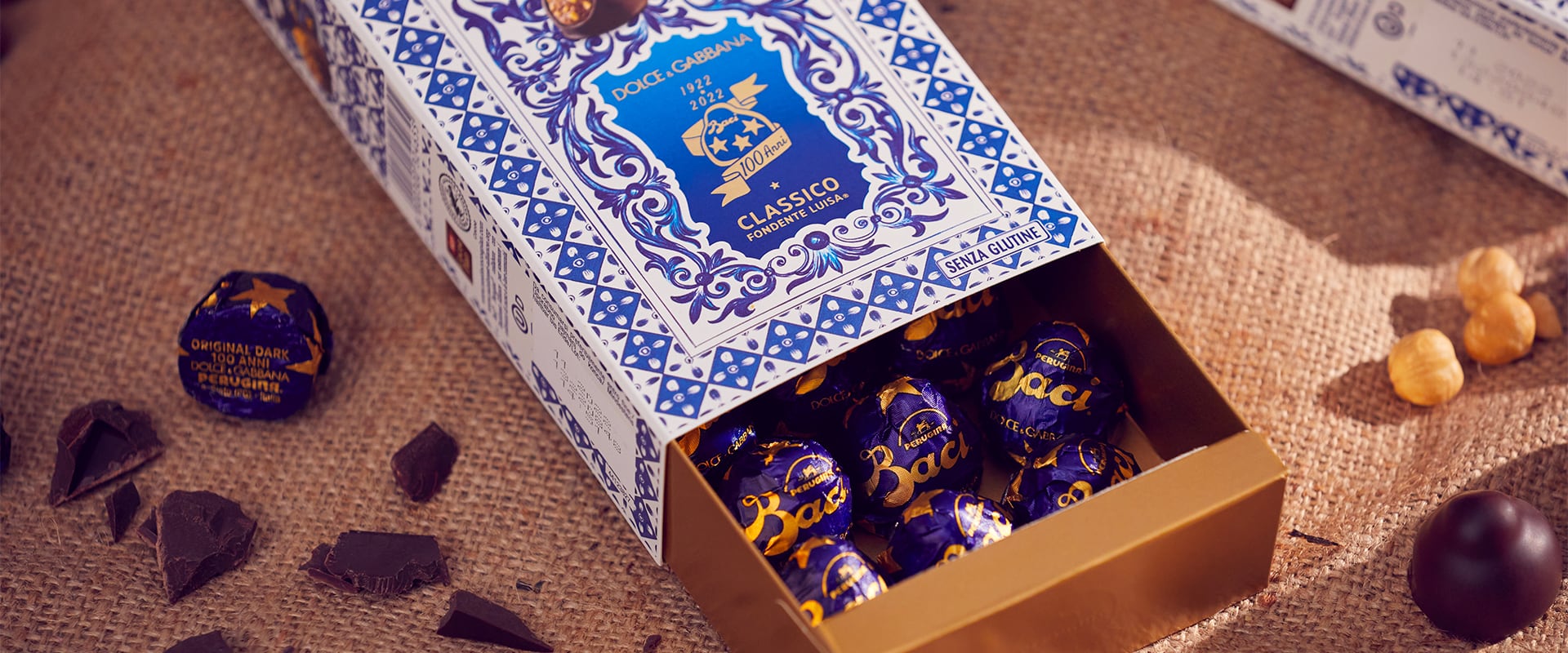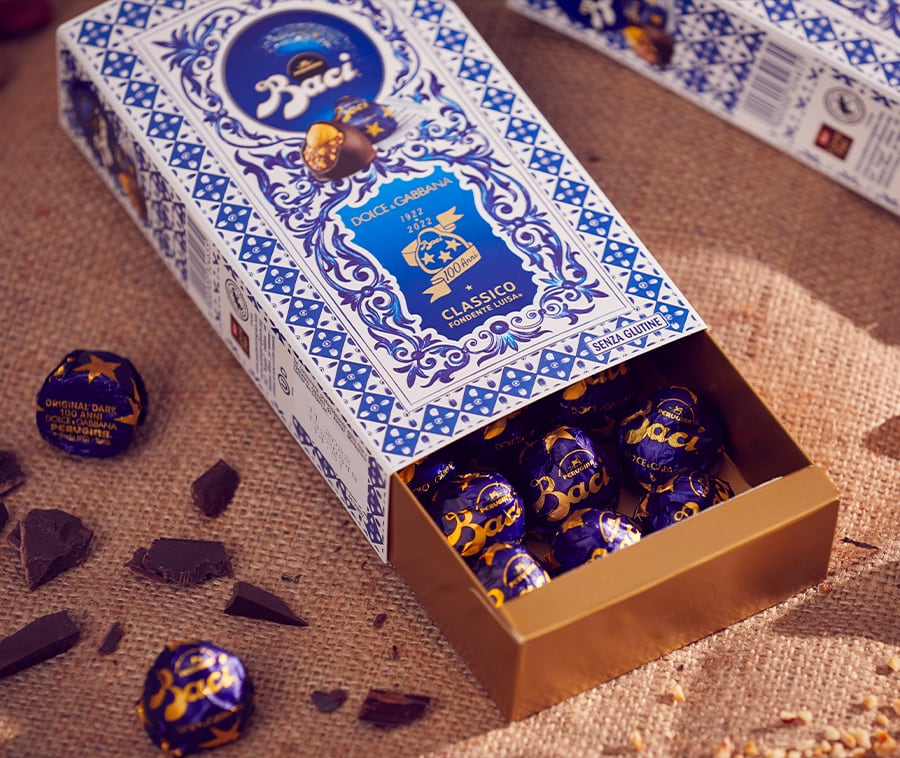 World新闻Baci Perugina百年诞辰一月 2022Baci Perugina百年诞辰Dolce&Gabbana和Baci Perugina的合作呈献创意新作,庆祝此历史悠久的芭喜巧克力品牌的百年诞辰。#合作链接已复制一月 2022阅读时长0分钟继限量版Baci Dolce Vita巧克力之后,Dolce&Gabbana和Baci Perugina再次展开创意合作,推出全新系列,庆祝此芭喜巧克力品牌的百年诞辰。 为庆祝品牌百年庆典,Baci Perugina原味黑巧克力拥抱全新创意,采用缀满金色星星的午夜蓝色包装和全新礼盒,其上饰有Dolce&Gabbana以Baci Perugina的色彩组合重新演绎的经典地中海马约利卡陶瓷图案。 链接已复制这是带有可以左右移动幻灯片 的轮播图。有些图片有放大按 钮,可以展开轮播图。使用“ 下一张”和“上一张”按钮来 浏览幻灯片,并使用“X”按 钮关闭已放大的轮播图。
