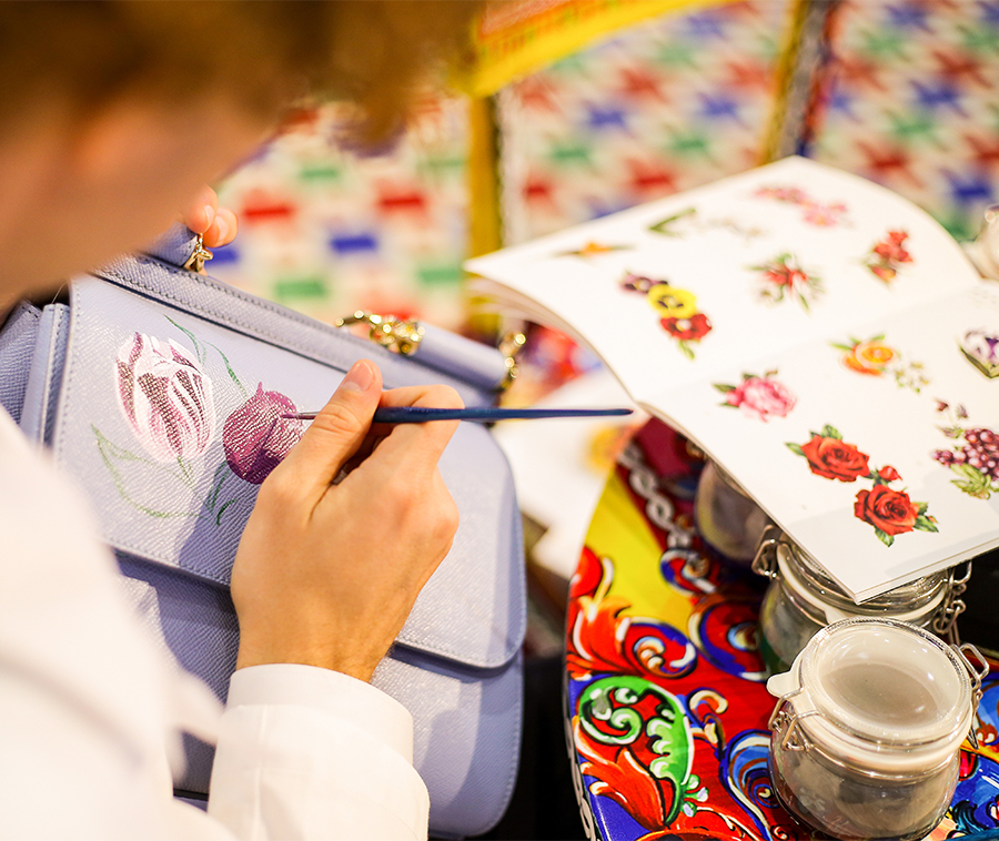 World新闻Dolce&Gabbana亮相2019年上海进博会 | #DGFATTOAMANO十一月 2019Dolce&Gabbana亮相2019年上海进博会 | #DGFATTOAMANO探索意大利手工匠在2019年上海进博会现场展示的Dolce&Gabbana精湛工艺#主题活动链接已复制十一月 2019阅读时长0分钟Dolce&Gabbana参加2019年上海进博会,多位手工匠现场展示品牌精湛技艺。缝纫匠人在现场完成服装制作;刺绣大师在运动鞋上缝制贴饰; 专业画师用手绘花朵和彩绘装饰点缀经典Sicily手袋,以及进博会期间为中国展台独家提供的Dolce Box特别版手袋;金匠也在现场展示其高超的珠宝工艺,包括金银丝细工、浮雕、凿刻等精细制造技艺。 这是带有可以左右移动幻灯片 的轮播图。有些图片有放大按 钮,可以展开轮播图。使用“ 下一张”和“上一张”按钮来 浏览幻灯片,并使用“X”按 钮关闭已放大的轮播图。链接已复制继续阅读这是带有可以左右移动幻灯片 的轮播图。有些图片有放大按 钮,可以展开轮播图。使用“ 下一张”和“上一张”按钮来 浏览幻灯片,并使用“X”按 钮关闭已放大的轮播图。十一月 2019新闻Dolce&Gabbana亮相2019年上海进博会 | 展台设计十一月 2019新闻Dolce&Gabbana亮相2019年上海进博会 | Dolce&Gabbana DNA十一月 2019新闻Dolce&Gabbana亮相2019年上海进博会 | Devotion十一月 2019新闻Dolce&Gabbana亮相2019年上海进博会 | 西西里马车主题十一月 2019新闻Dolce&Gabbana亮相2019年上海进博会 | DG千禧一代