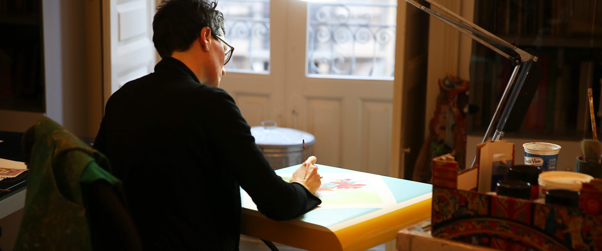 志同道合的母女。漫步卡塔尼亚的中央街道,会不由自主地被一个迷人的手工坊吸引。欢迎来到Adriana和Tiziana令人神迷的袖珍王国。母女俩对自己出生长大的土地有着满腔热忱,心有灵犀。两人分别出生于1977年和1950年,均是来自卡塔尼亚的西西里本地人。她们以火山般的热情共生共息,形成极富爆发力的工作伴侣。她们为自己的事业努力奋斗,全心投入,同时虚怀若谷。她们拥有健康而富有趣味的讽刺意识,秘诀在于她们对西西里、文化、传统及Pupi木偶艺术的热爱。古老的彩绘马车文化作为西西里“建筑”图景的重要组成部分,为她们带来源源不绝的灵感。30多年前,Adriana制作了她的第一个微型西西里木偶(Sicilian Pupo)。怀着对艺术的热情,她在世界各地展示自己的作品。拥有艺术天赋的Tiziana受母亲的启发,锐意创新,决定制作别具一格的手工艺品,将西西里赋形于艺术形态。她们日复一日研究西西里艺术史,并发明讲述其故事的全新方式。