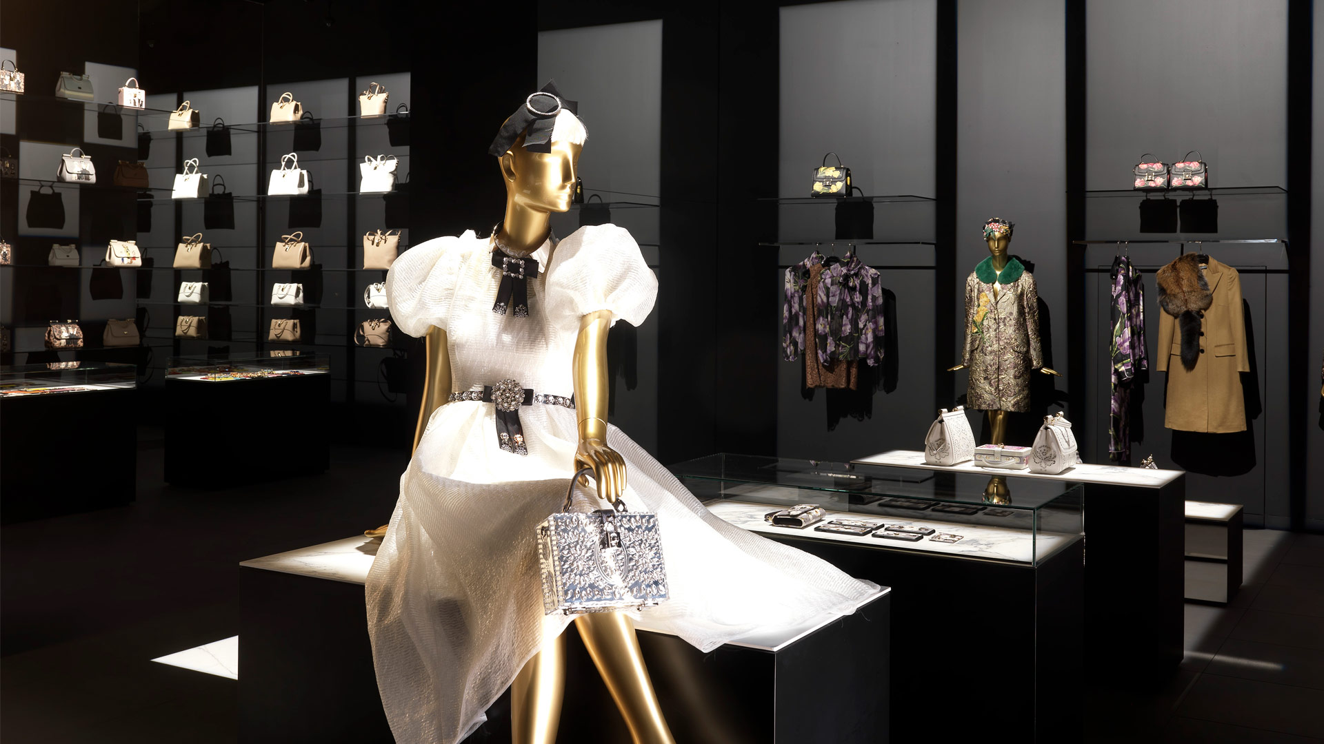 “西西里的阳光照耀着全新Dolce & Gabbana青山精品店:巧妙的光影明暗效果展现作品精致瑰丽的美感。”